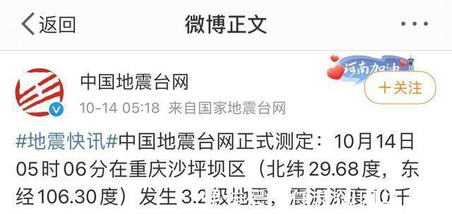 今日凌晨5时6分,沙坪坝区发生3.2级地震。原本九九重阳节,重庆人朋友圈的消息却多是关于地震的,#重庆沙坪坝区3.2级地震#也在一大早成为了热门话题。